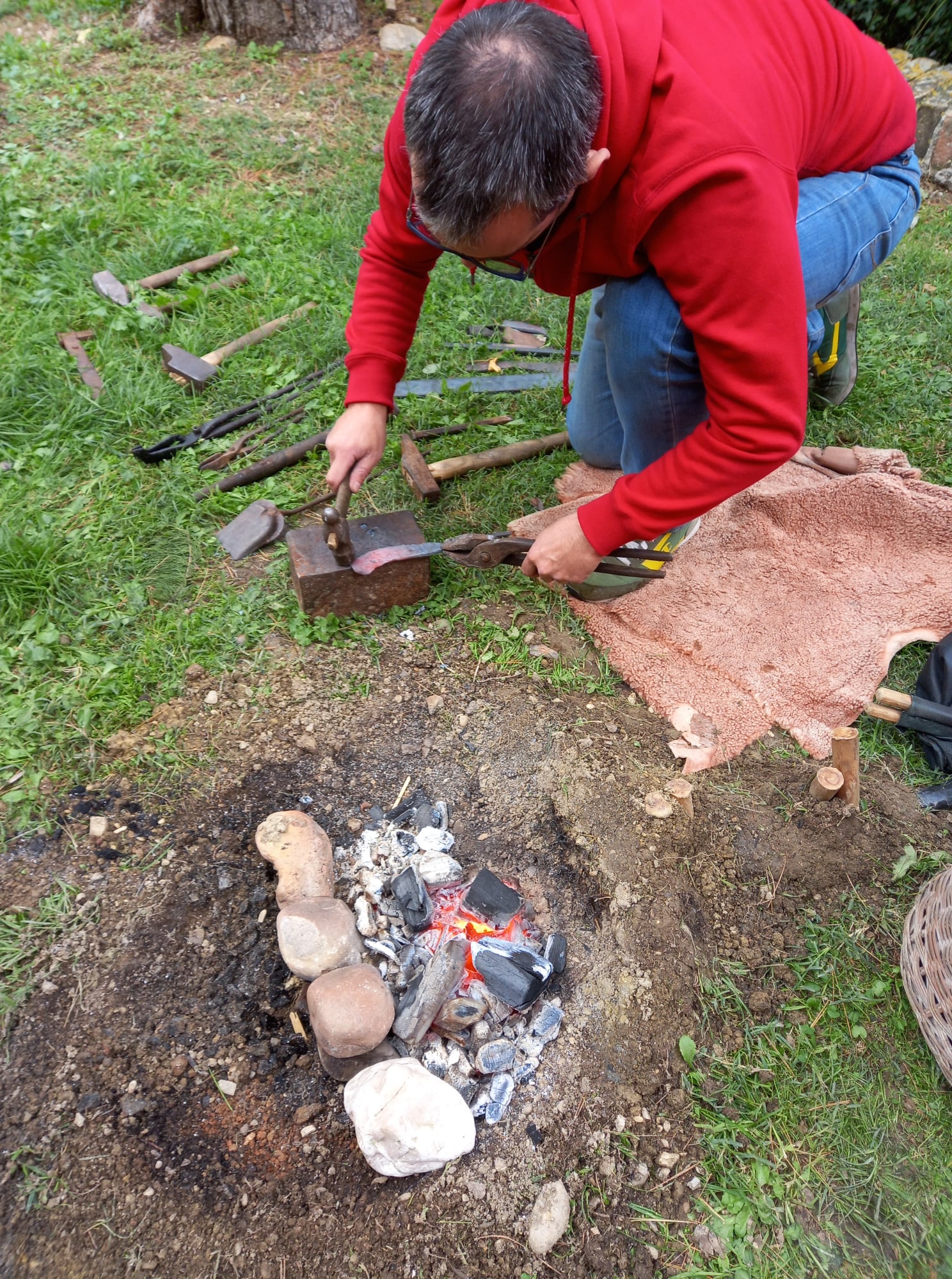 The activities in Sunday saw a similar participation, with more or less the same number of people watching the smiths feeding their furnaces with coal in order to reach the temperatures needed to either forge steel weapons or melt a couple of bronze Picenian pendants. Dealing with fire is potentially dangerous, but under my guidance I let some kids operate my bag bellows and they did so well that I would gladly hire some of them as helpers…!