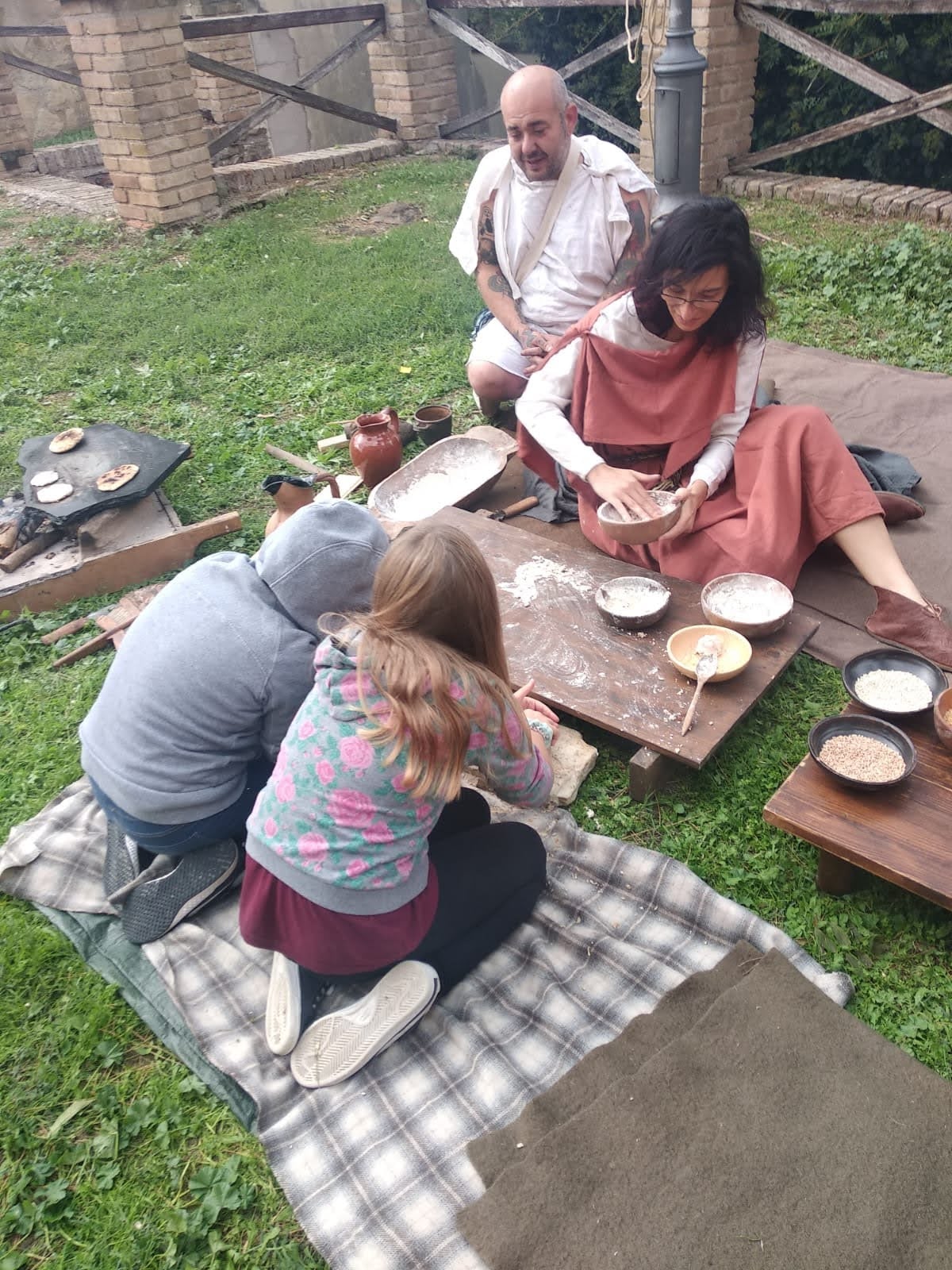 The public’s response was beyond any expectation: Novilara Antika Populi and Teuta Senones Pisaurenses’s workshops on Saturday afternoon high a high attendance rate, with about 50-80 people enthusiastically getting their hands dirty while bread making and extracting scents from plant leaves such as laurel. A lot of kids had a chance to make and cook their personal loaf of Picenian bread!