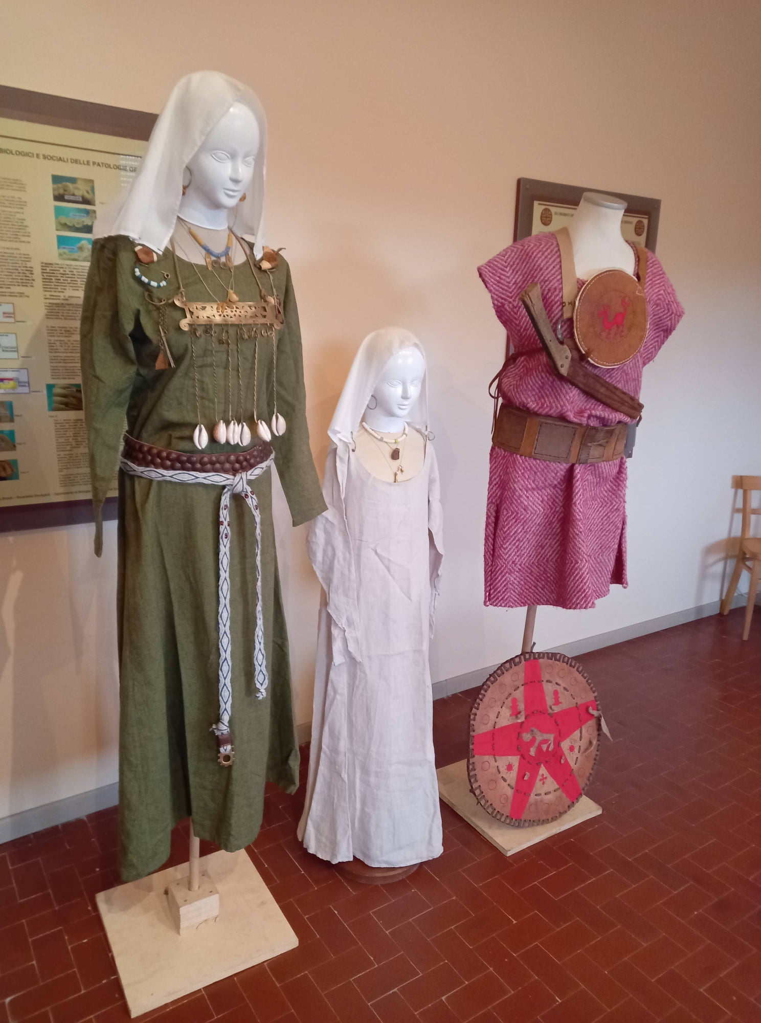 Once more we noticed how people are fascinated by the exhibition of full outfits such as the reconstruction of the garments worn by a 7th century Picenian family: the husband is a warrior wearing offensive and defensive weaponry modeled on examples found in Novilara, the wife is a noblewoman dressed with replica of clothing found scattered in the Marche and Abruzzo regions2 , and the daughter is a little girl wearing trinkets modeled on some examples found mainly in Torre di Palme (Fermo Province). Once again, these reconstructions proved to be a valuable vehicle to bring the public closer to history.