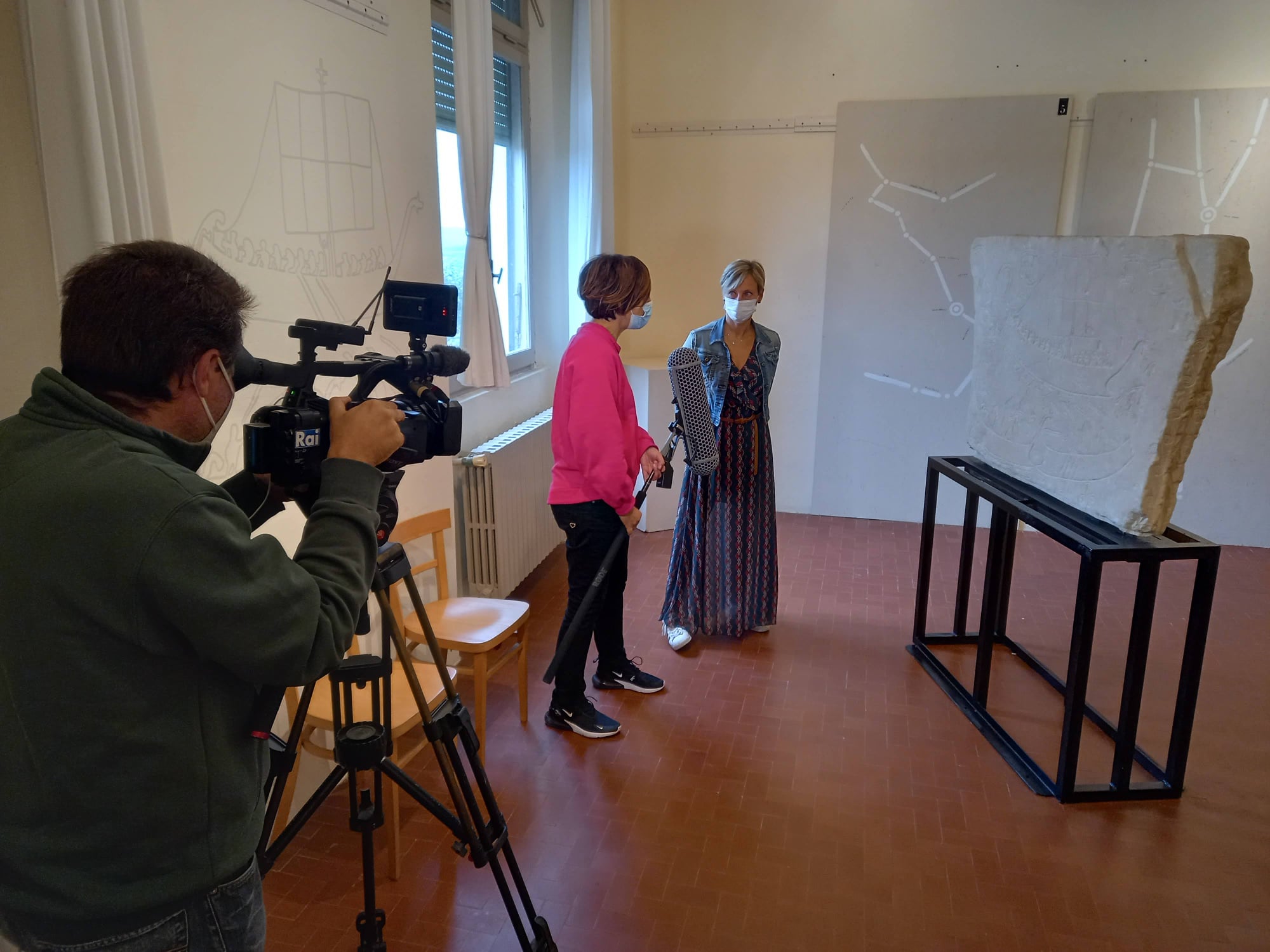 So the program was defined, word was spread and on Friday the 8th some of us agreed to meet the following morning in order to set up the tables and prepare the location at the Centro di Documentazione Archeologica in Novilara. Almost the entire team met the next morning – Arte Picena was missing due to work reasons – and we had the pleasure of being interviewed by the TGR, whose crew was so impressed with the event to decide not to cut a single minute of our interviews and to air them on tv in two separate parts, in the afternoon and in the evening editions of the show. This was my third appearance on TV and it was great fun!