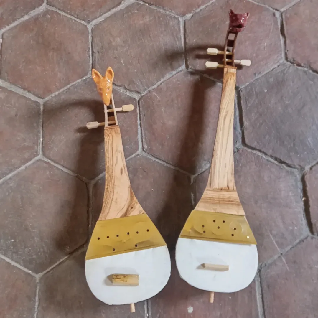 The plectrum for both instruments is made of bull horn, 8 mm wide, thickness 0.5 mm.