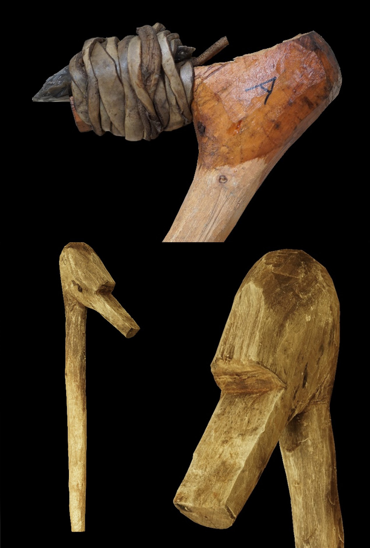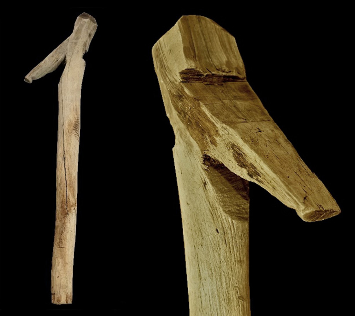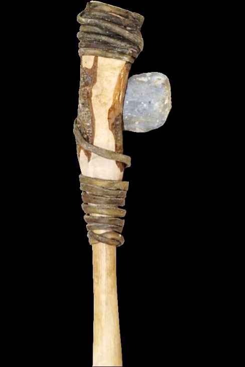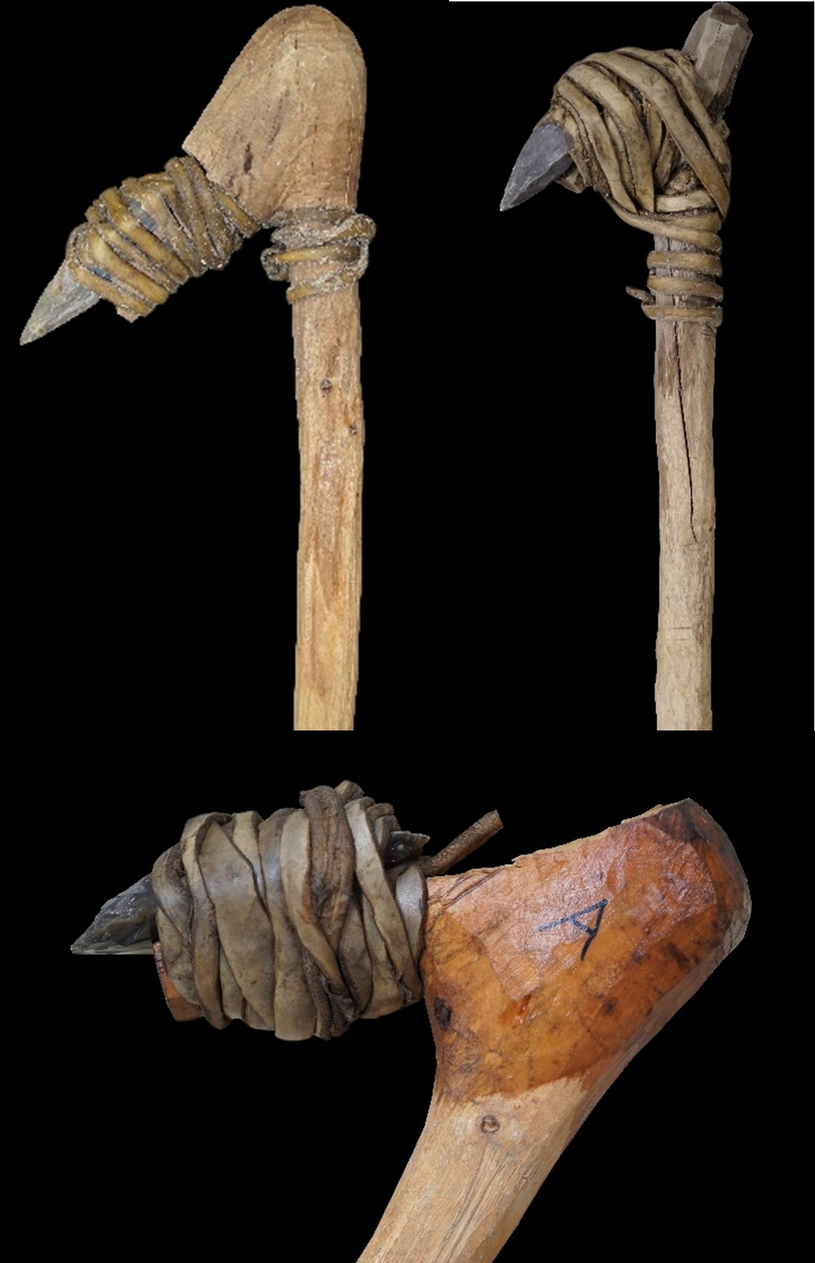 - AXE1.3 with a purposely split and opened haft for better lithic embedding.